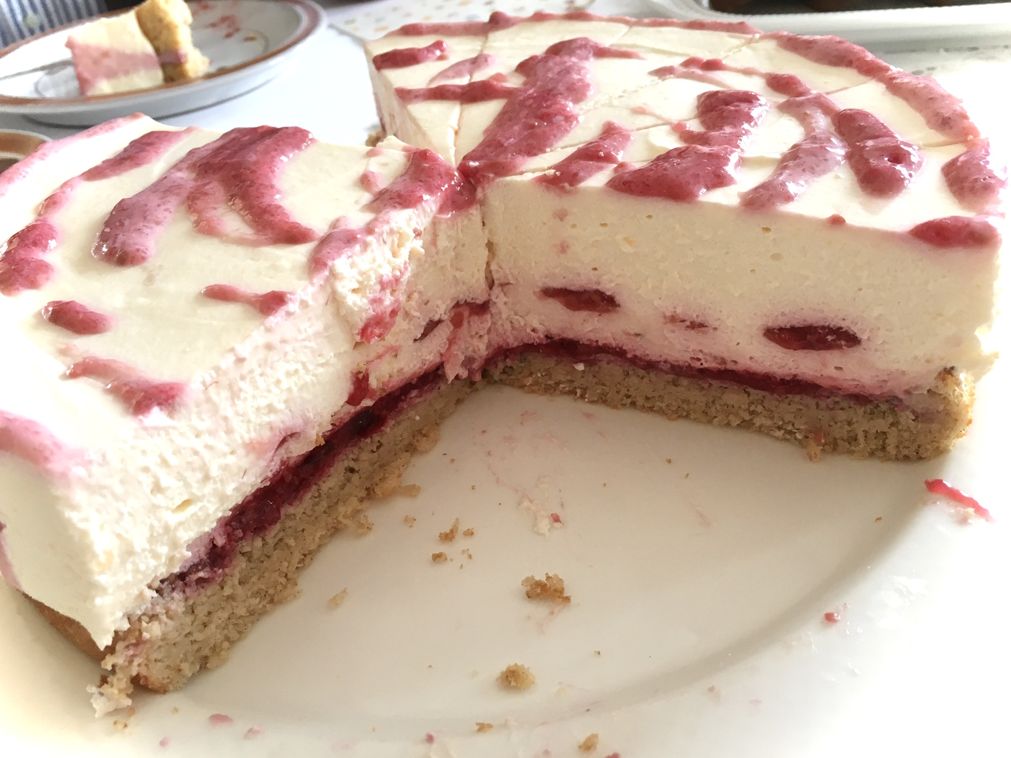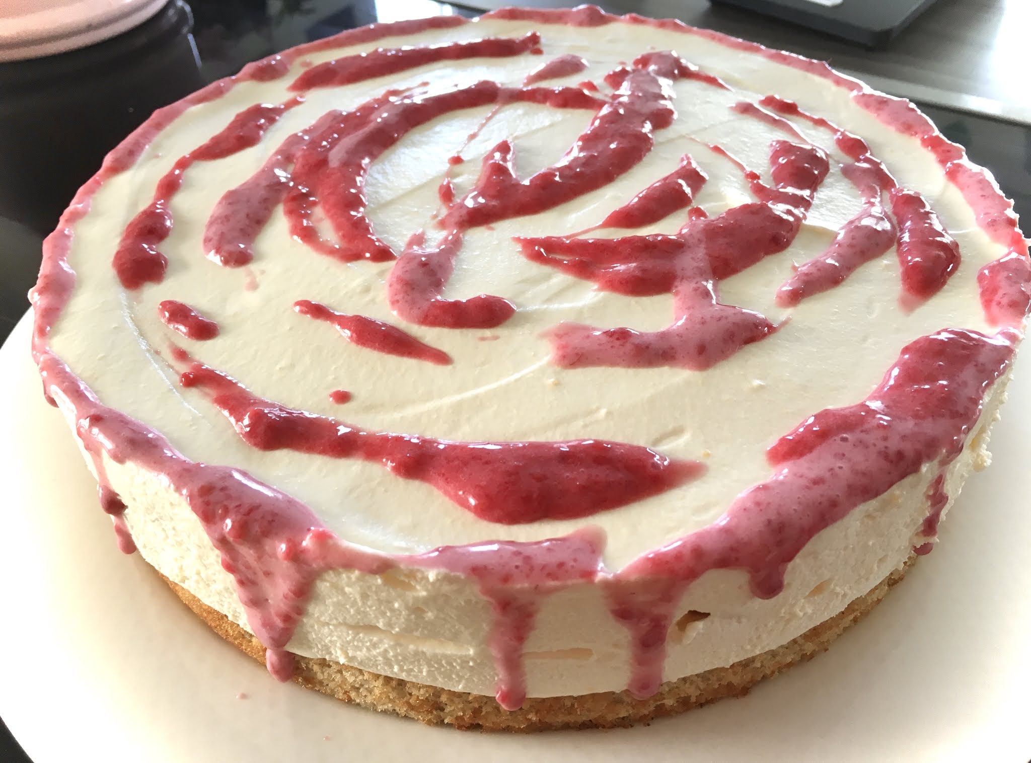 Low Carb Käse-Sahne-Torte mit Beeren Swirl